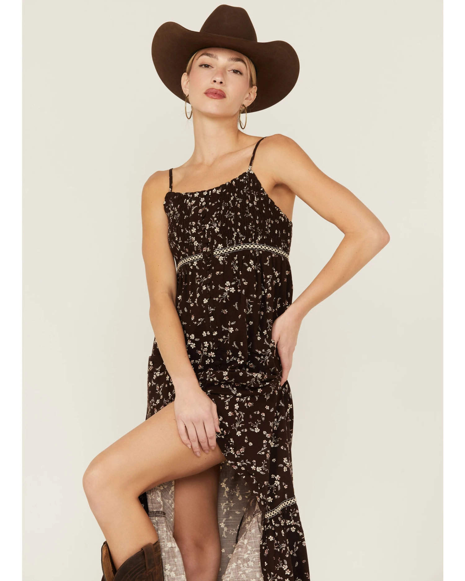 Cleo + Wolf Women’s Dark Brown Floral Duster Dress