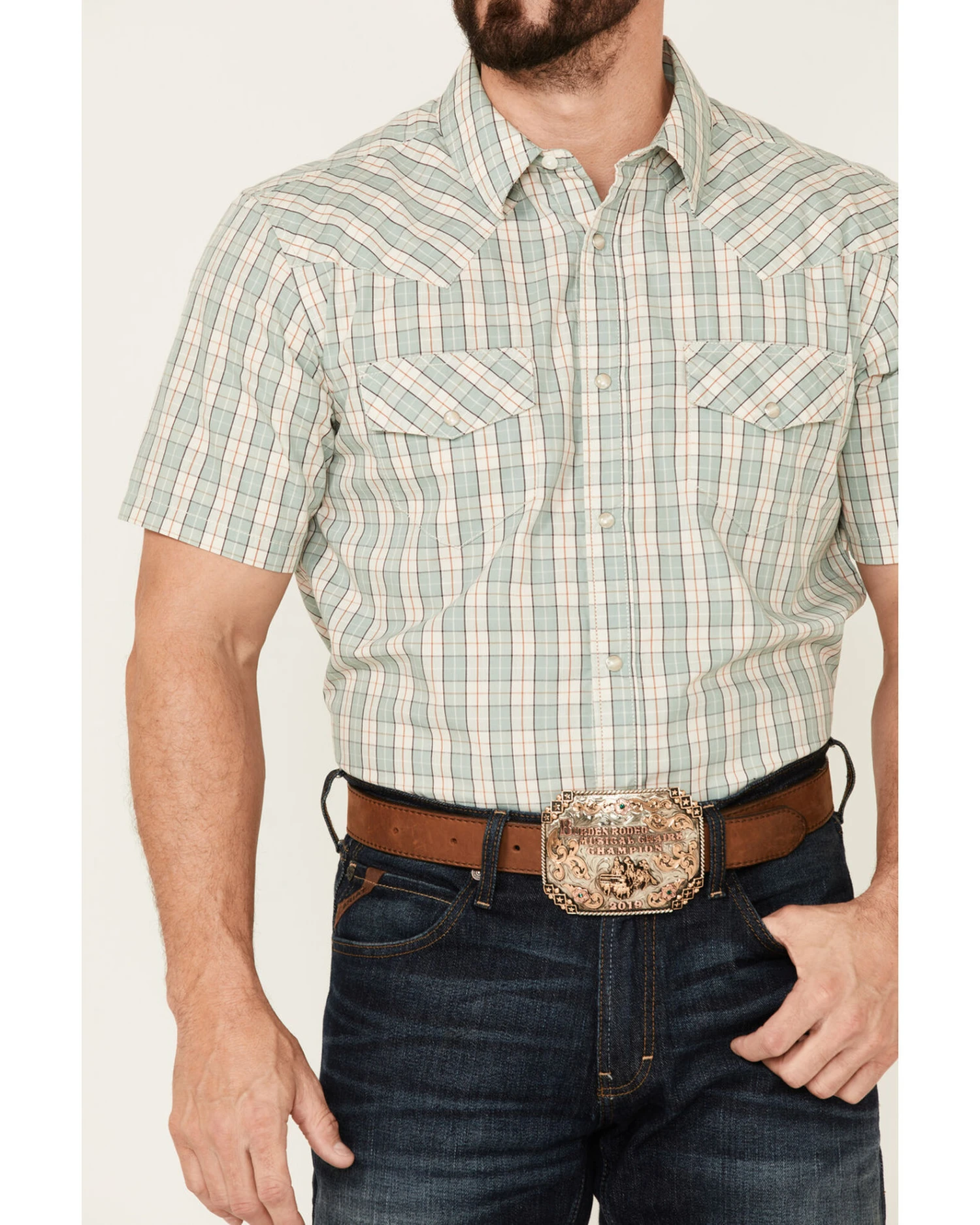 - Pearl snap down front placket