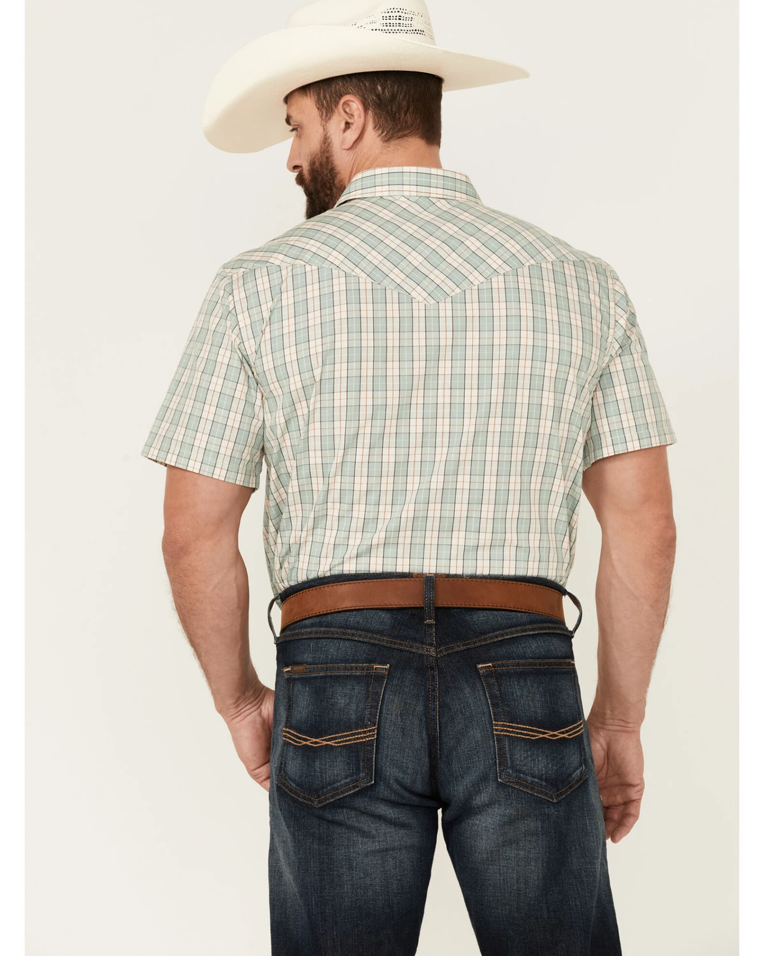 George Strait By Wrangler Men’s Checkered Print Short Sleeve Stretch Button Down Shirt