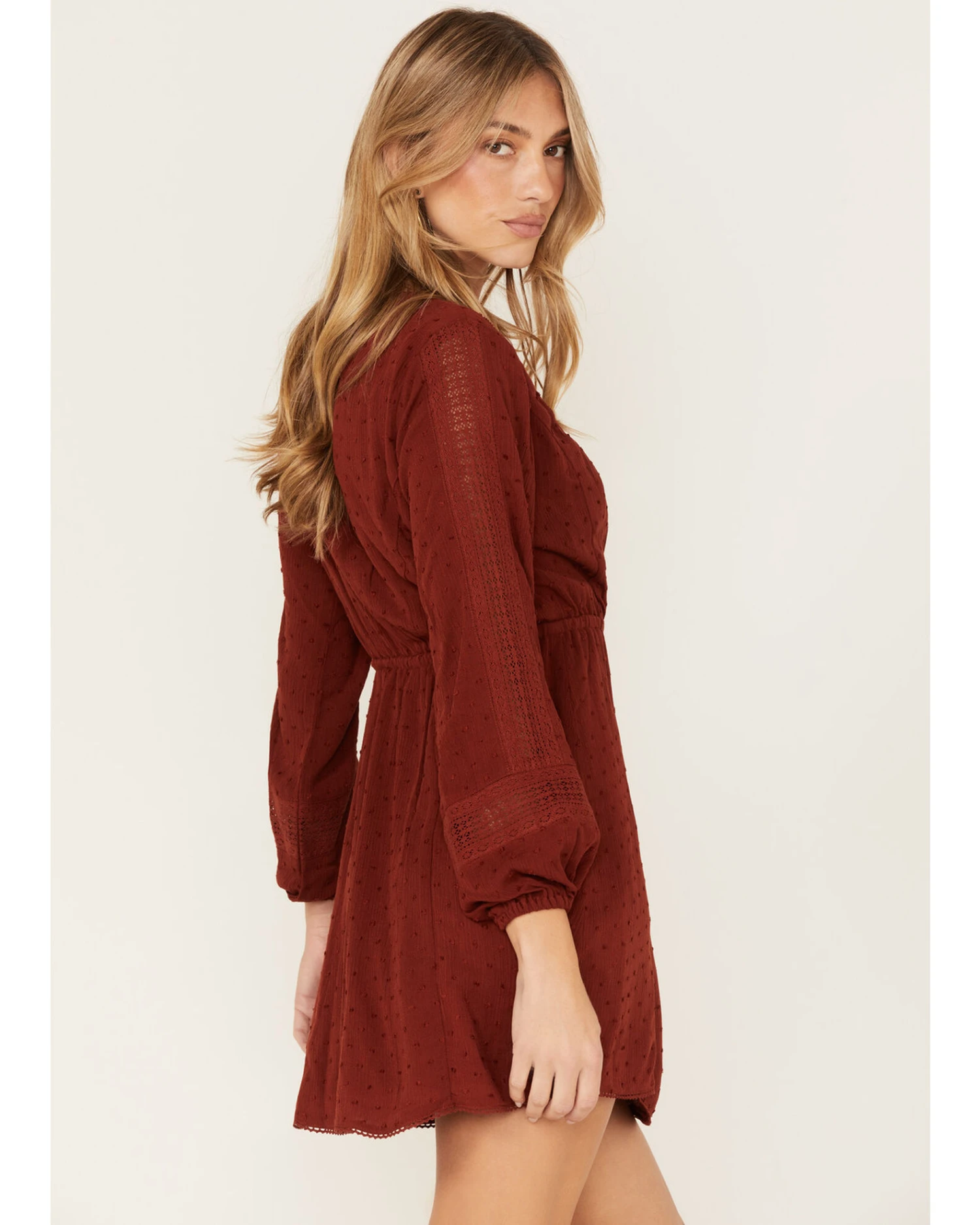 Idyllwind Women’s Floral Embroidered Swiss Dot Wrap Dress