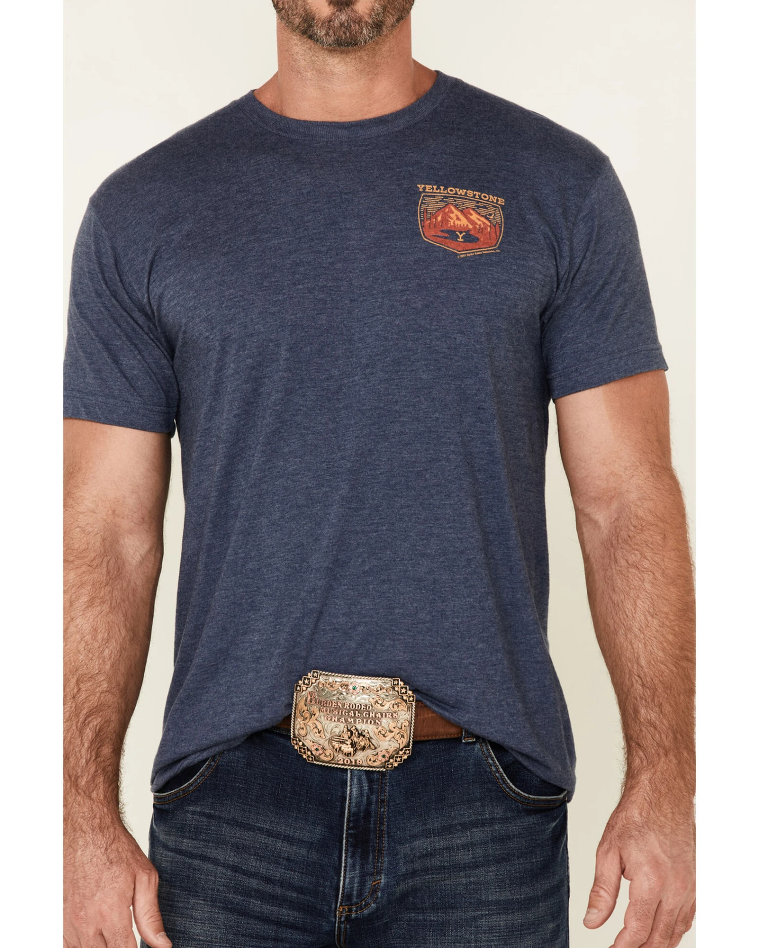 Paramount Network’s Yellowstone Men’s Heather Navy Dutton Ranch Mountain Range Graphic Short Sleeve T-Shirt