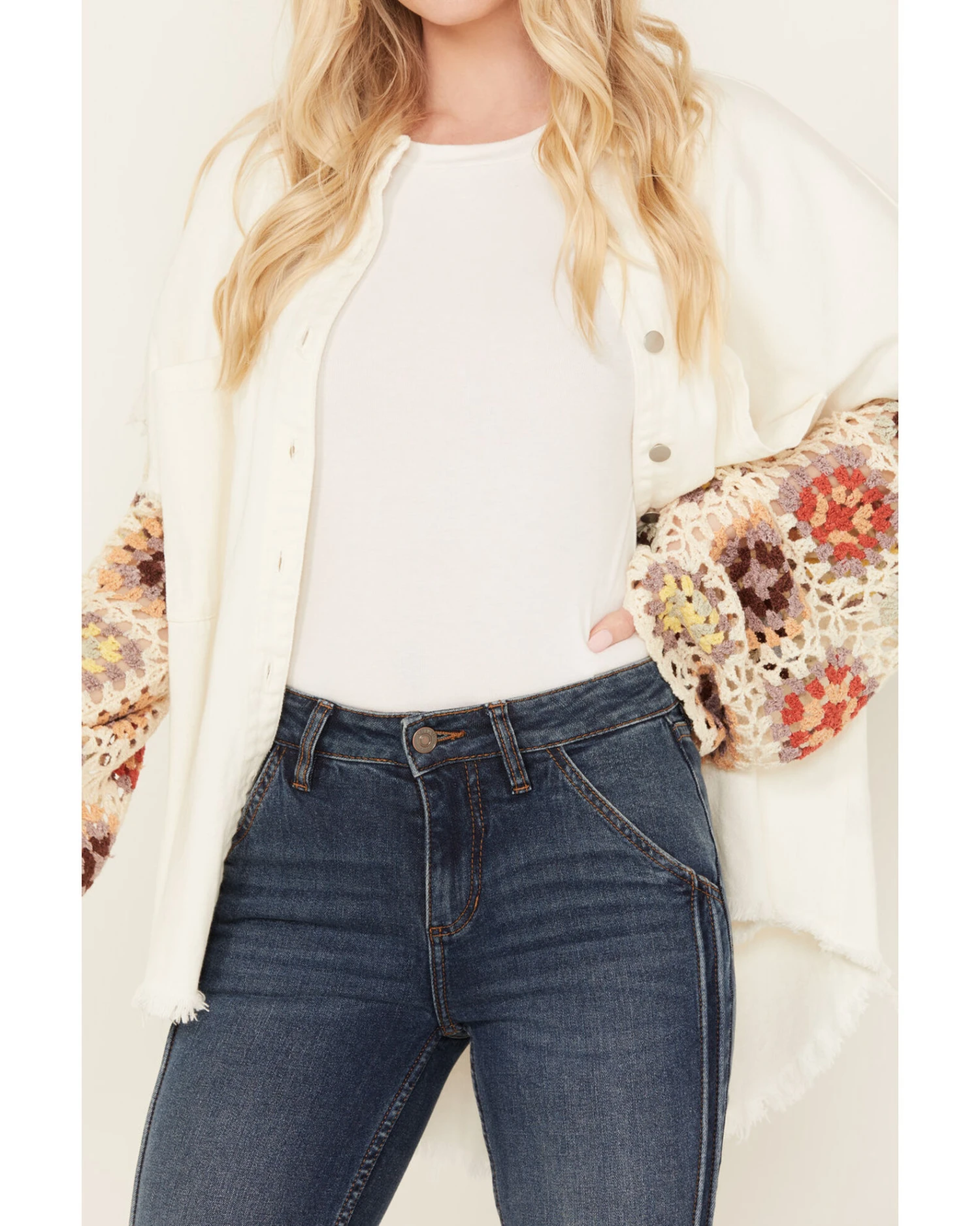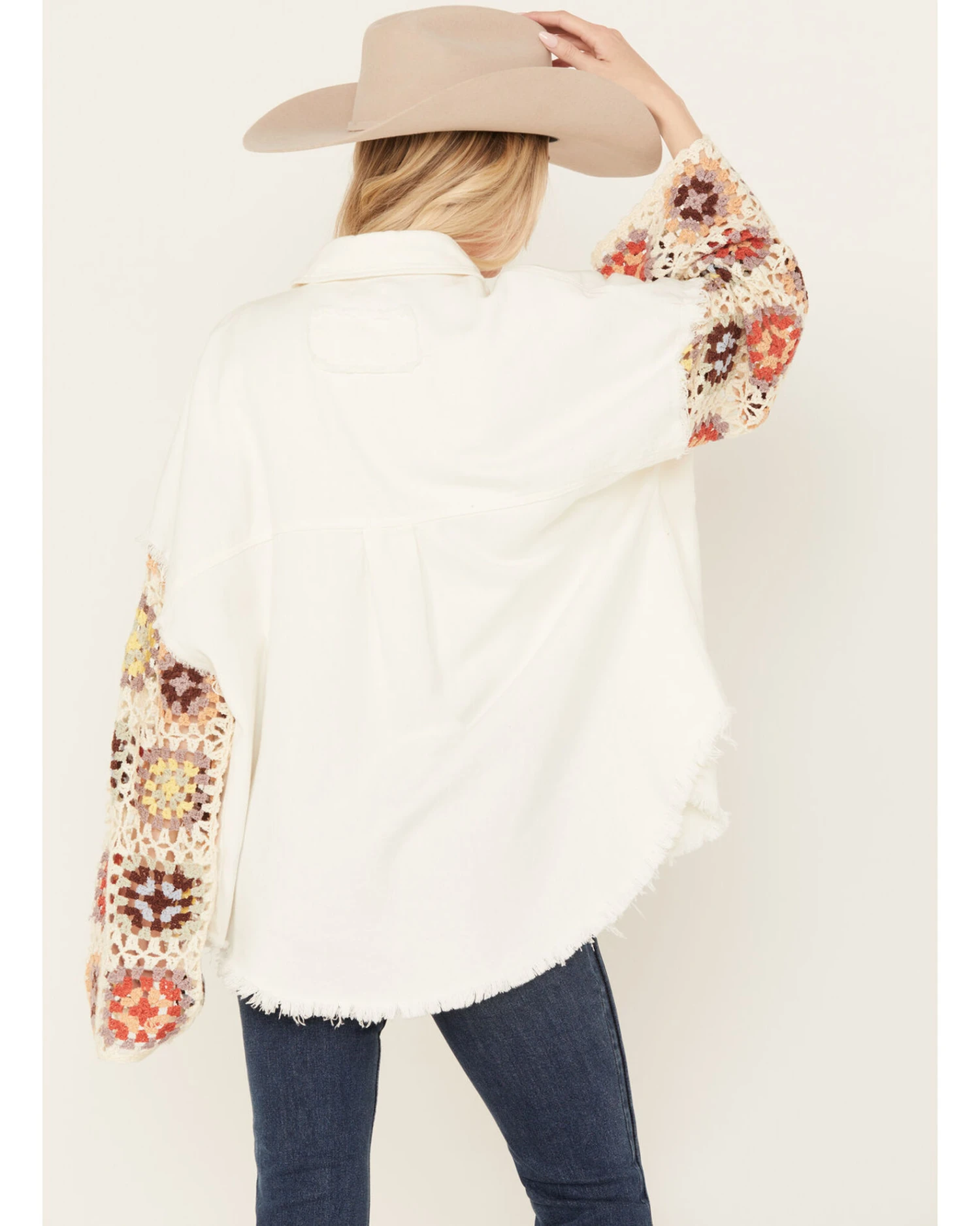 - Multicolored long crochet sleeves