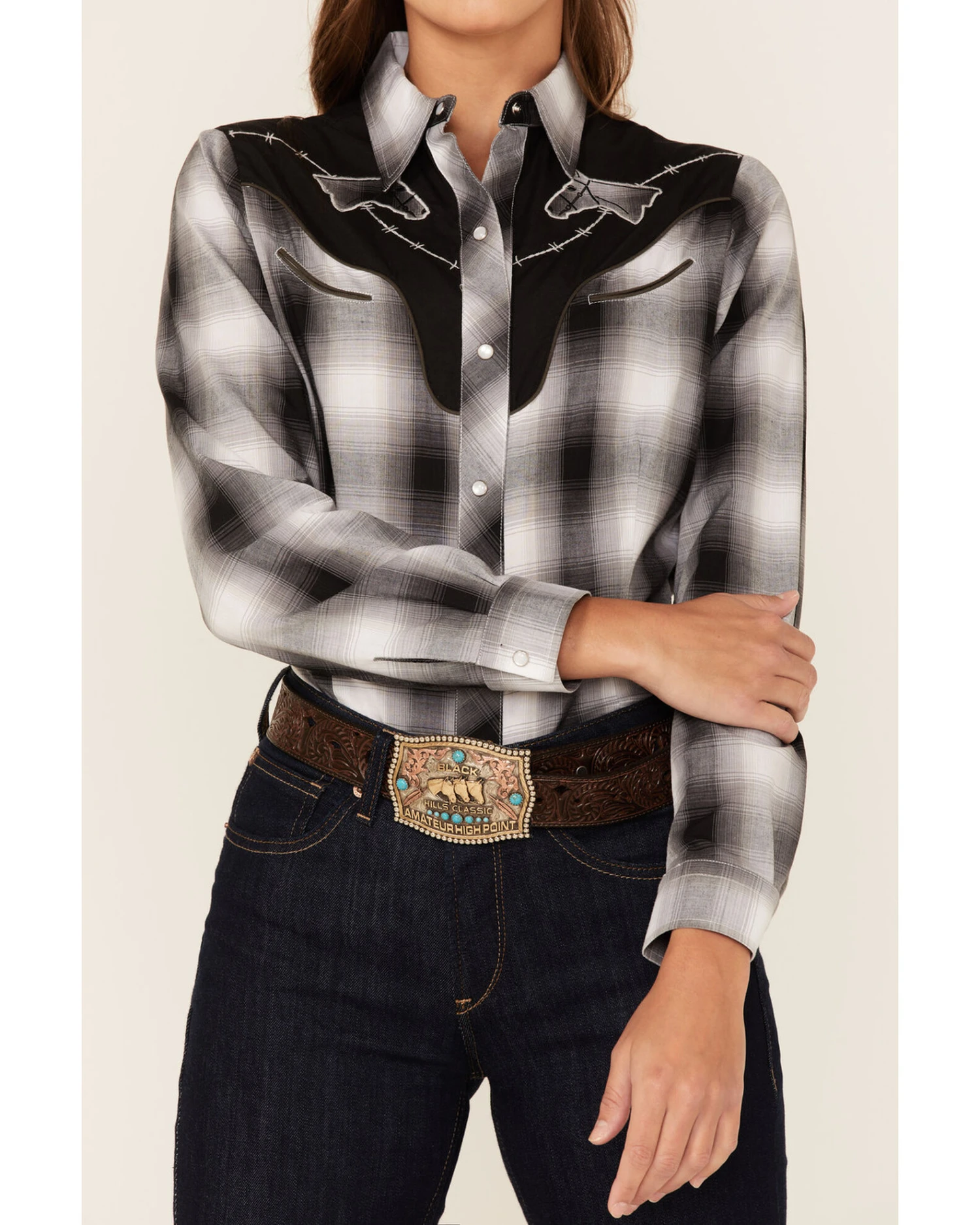 - Pearl snap front placket