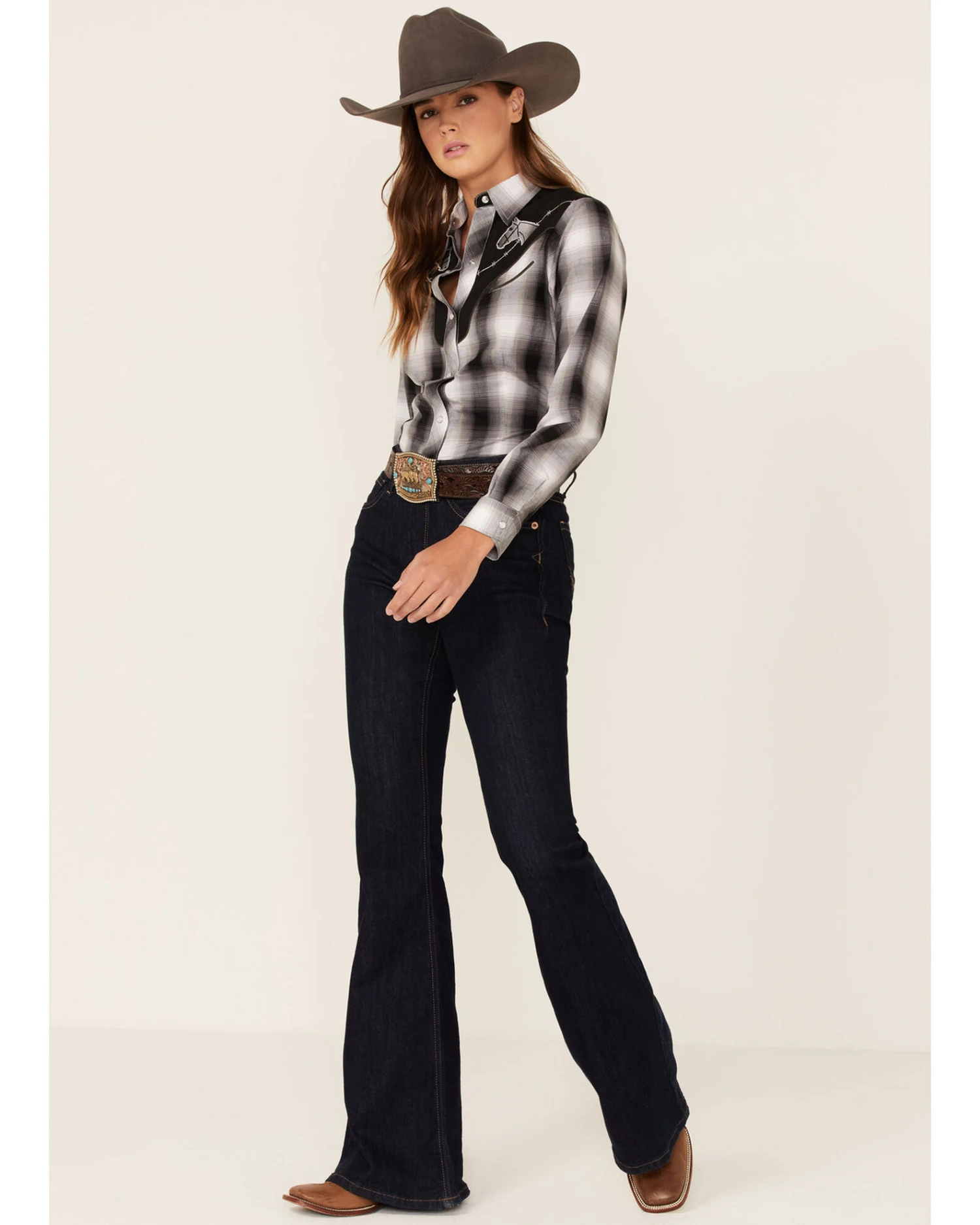 Roper Women’s Plaid Print Long Sleeve Pearl Snap Western Shirt