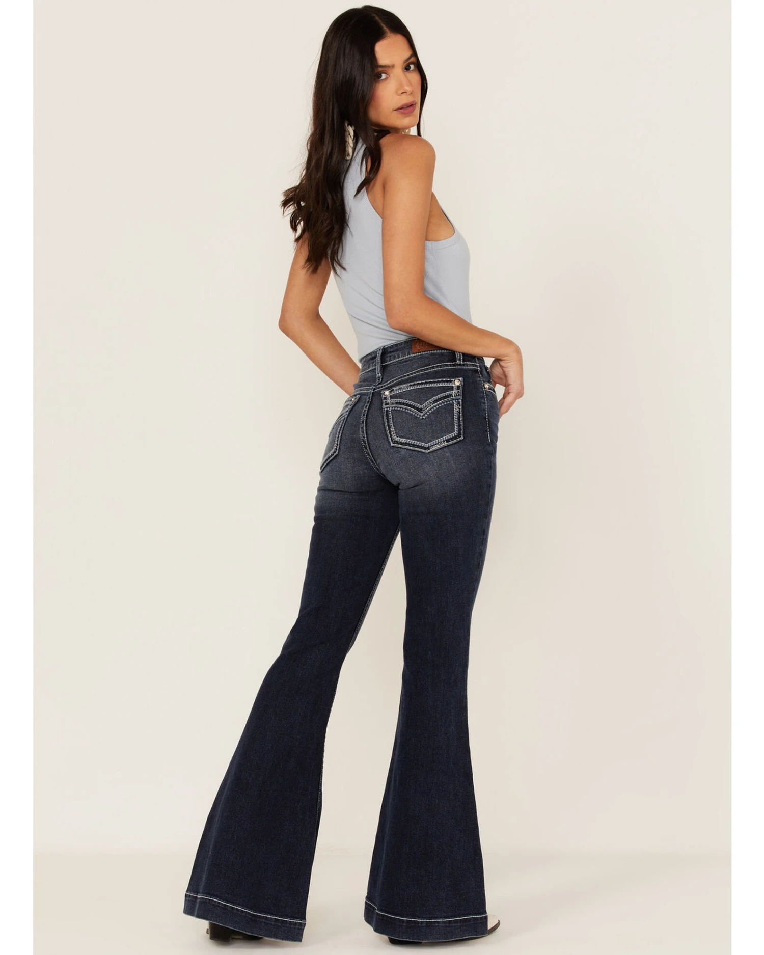 Shyanne Women’s Dark Wash Mid Rise Embroidered Bootcut Jeans