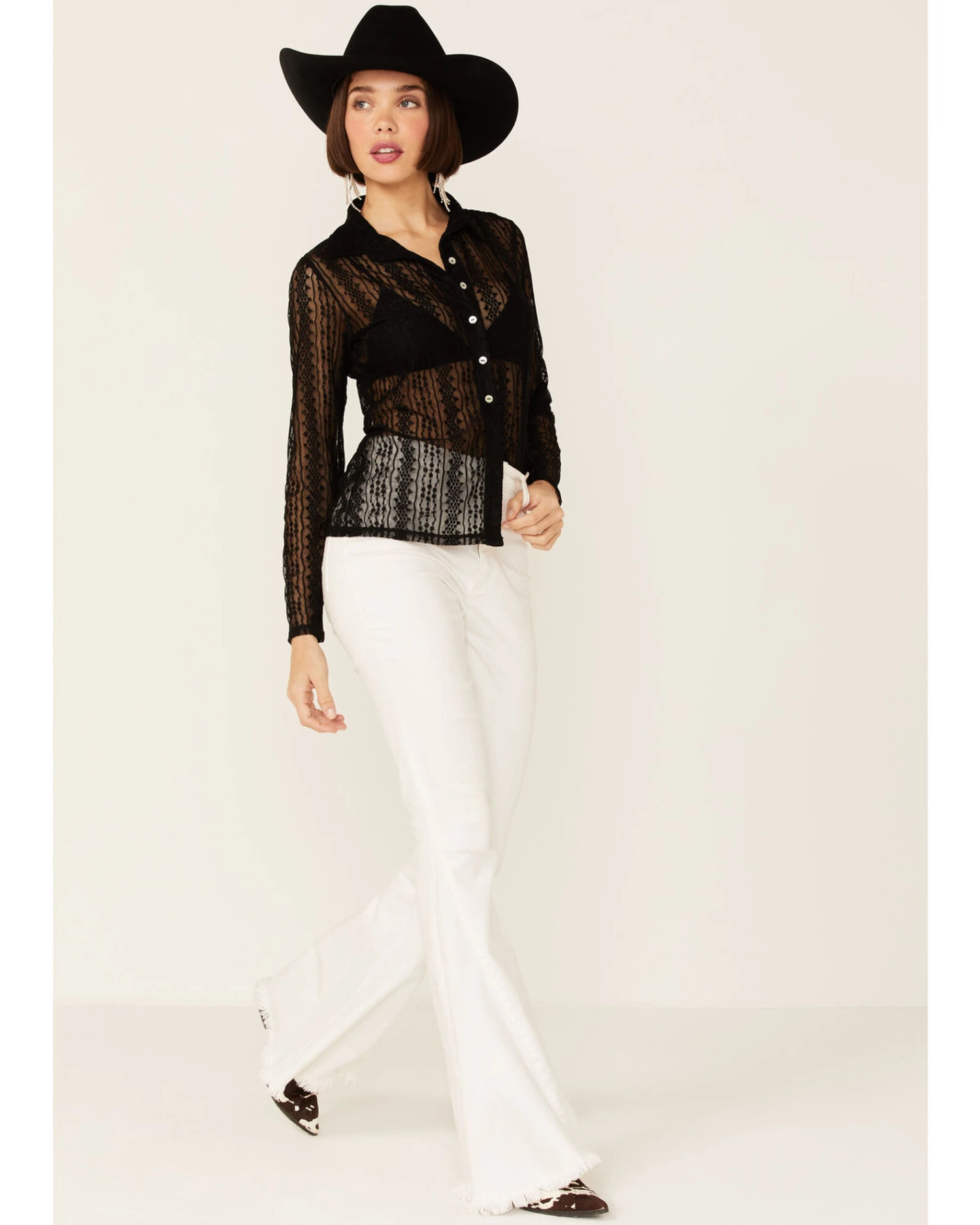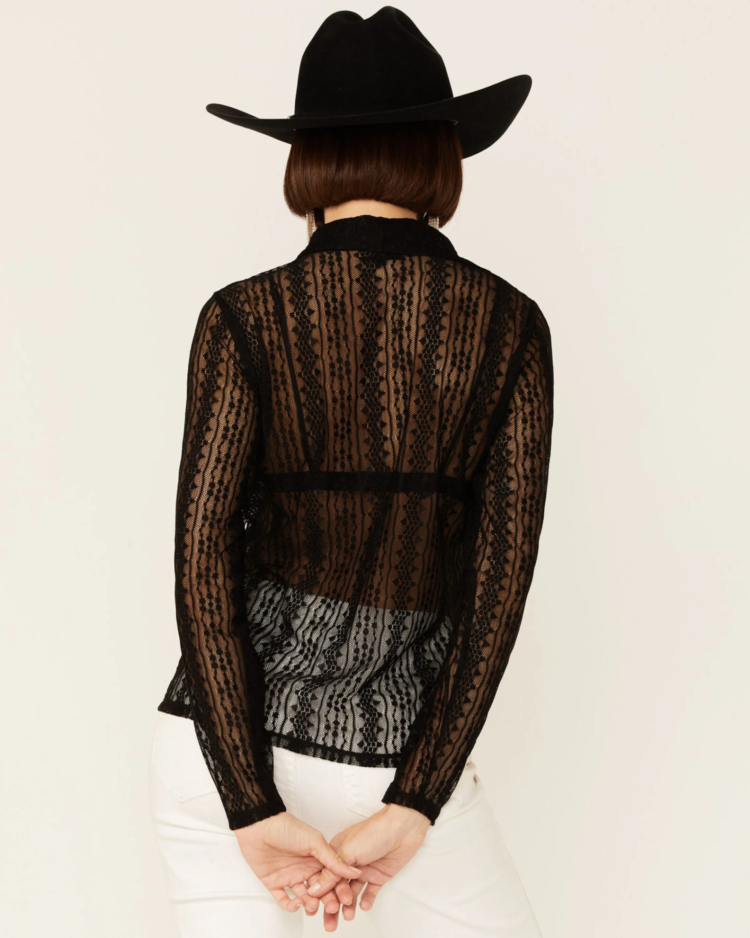 Wild Moss Women’s Lace Button Front Sheer Long Sleeve Shirt
